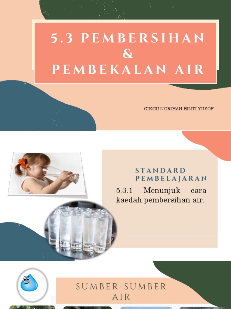 Sistem taliair al jazari sepatutnya al jazari diiktiraf sebagai pencipta gear demikian itu kerana bukan saja telah mencipta sistem gear itu lebih 200 tahun sebelum leonardo tetapi telah berjaya mendirikan sistem pembekalan air menggunakan sistem gear itu. Air kolam • air kolam mengandungi garam mineral, sisa, dan mikroorganisma seperti bakteria. Air mempunyai peranan yang sangat penting di dalam kehidupan manusia. Langkah penjimatan air • mandi dengan air pancuran. Di tangki penggumpalan, kapur mati (kalsium hidroksida) ditambah untuk mengurangkan __________ air.